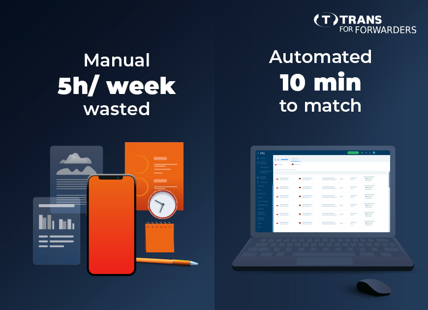 - Faster carrier sourcing – On average, freight forwarders spend up to 5 hours per week searching for the right carriers. With Trans.eu, this can be reduced to just minutes thanks to automated matching with available partners.